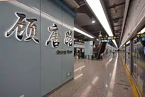 Gutang Road (simplified Chinese: 顾唐路; traditional Chinese: 顧唐路; pinyin: Gùtáng Lù) is a station on Line 9 of the Shanghai Metro. The station is located on Jinhai Road at Gutang Road, between Jinhai Road and Minlei Road stations. It began passenger trial operation with the rest of phase 3 of Line 9, an easterly extension with 9 new stations, on December 30, 2017.[1]