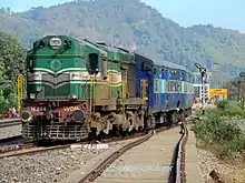 ![]() Ex-GOC, now NGC WDM-2 16864 leading 15718 Mariani–Guwahati Intercity Express exits Narangi station | |||||