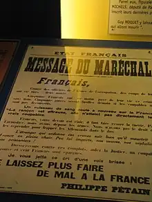 Philippe Pétain announces the execution.