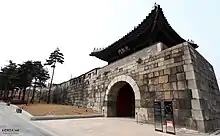 Gwanghuimun (Korean: 광희문; Hanja: 光熙門; lit. Bright Light Gate;[1] also known as Southeast Gate) is one of The Eight Gates of Seoul in the Fortress Wall of Seoul, South Korea, which surrounded the city in the Joseon Dynasty. The gate is also known as Namsomun (남소문; lit. South Small Gate). It was originally called Sugumun (수구문; 水口門; lit. Water Channel Gate).
