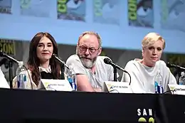 Gwendoline Christie with her Game of Thrones co-stars Carice van Houten and Liam Cunningham (San Diego Comic Con 2015)