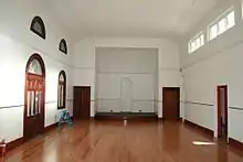 The southwest extension works off a vestibule which provides access to a large rectangular room to the southwest, the original western and southern corner rooms of the court house and terminates at a square room to the rear of the lands office extension. Evidence remains of the earlier south-west court house entrance porch configuration including the infilled arched doorway into the courtroom.[1]