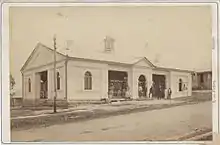 The first government buildings in Gympie – the Gold Commissioner's Office, Powder Magazine and Post Office – were built in 1868. The Gympie Gold Commissioner, Henry Edward King, (also Secretary for Public Works and Mines from November 1874 to May 1876) initially conducted his court in temporary structures, and the first permanent mining court was a slab and shingle-roofed building near Cross Street, northwest of the Surface Hill Uniting Church. A Court of Petty Sessions, Commissioner's Camp, Mary River Gold Fields, was proclaimed by the Governor in Council on 20 February 1868, and by 1869 there was a court house at the corner of Duke and Channon Streets, on Commissioner's Hill (on the site of the town's third Post Office). The town's second Post Office was located just northwest of this court house. The 1876 court house (the second Court of Petty Sessions in Gympie) was built on the site of the original police lock-up and stables, on the north side of Channon Street between Duke and King Streets.[1]