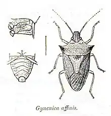 - ↑ Mathew, Koshy (1980). "A new species of Gynenica from South India (Heteroptera : Pentatomidae)". Oriental Insects. 14 (3): 379–382. doi:10.1080/00305316.1980.10434816.