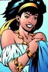 There have also been hints of a romantic relationship between Gypsy and the Bronze Tiger.[3] Gypsy and J'onn keep in touch. At one point, after she had been killed, Gypsy was resurrected by the Manhunter, who plead with his Martian god, Hronmeer, to restore Cynthia to life.[20] Cynthia also aided Wonder Woman during a massive battle against Circe.[21]
