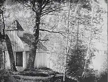 Near Håkås Søndre (59°40′23″N 11°15′19″E / 59.673138°N 11.255372°E / 59.673138; 11.255372), there is a strange chapel called Bech's Chapel, built by the student and owner of Håkås Søndre Peter Christian Bech around 1816 as a memorial for himself. A lifelong student of theology, he died at Håkås Søndre in 1818, and carefully staged his own death. He is buried under the chapel, and his horse and dog are buried in front of it (the horse to the left and the dog to the right). An obituary by himself in Danish and Latin was placed inside the chapel. It reads:[7]