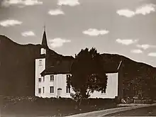 The earliest existing historical records of the church date back to the year 1445, but the church was not new at that time. That old church was likely a stave church. The medieval church was torn down in 1629 and replaced with a wooden long church. This timber-framed building had a small tower and small windows. It sat in a similar position to the location of the present-day church.[3]