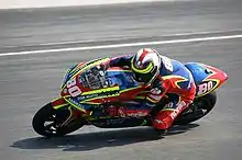In the 2009 250cc world championship, Barberá won three races along with five other podium results to finish second to Honda's Hiroshi Aoyama.[2] Barberá won the 2009 Valencia Grand Prix, the final two-stroke, 250cc race in Grand Prix history, as the class was to be discontinued in favor of the four-stroke Moto2 class in 2010.[2] On 20 August 2009 it was announced Barberá would move to MotoGP in 2010, riding for the Aspar Team aboard Ducati customer bikes.[4][5] Barberá finished the 2010 MotoGP season in twelfth place, and followed on in eleventh place in 2011. On 7 November 2011, it was announced that he was moving to Pramac Racing for the 2012 season.[6]