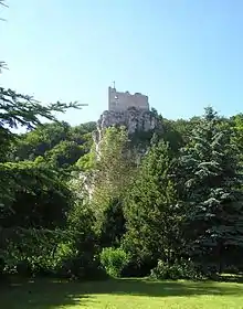 For several hundred years, the Wittelsbach Dukes of Bavaria repeatedly used the castle as a pledge, (allowing other noble houses to live in the castle in return for performing various obligations). The castle was burned down during the 1420-1422 Bavarian War and then abandoned. The ruins of a tower are still visible today on Hütting's highest peak.[2]