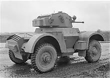 An advantage of the H-drive was the low overall body height as the hull could sit between the suspension units, rather than above axles. This was demonstrated by the Canadian Lynx Scout Car, a derivative of the Daimler Dingo but using conventional Ford axles, which was a foot higher overall (70 in, 1.8 m vs 59 in, 1.5 m).[5][6]