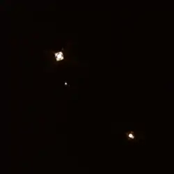 The claimed discovery of a massive planet, named HD 131399 Ab, was announced in a paper published in the journal Science.[3] The object was imaged using the SPHERE imager of the Very Large Telescope at the European Southern Observatory, located in the Atacama Desert of Chile, and announced in a July 2016 paper in the journal Science.[3][12] It was thought to be a T-type object with a mass of 4 ± 1 MJ,[3] but its orbit would have been unstable, causing it to be ejected between the primary's red giant phase and white dwarf phase.[13] This was the first exoplanet candidate to be discovered by SPHERE. The image was created from two separate SPHERE observations: one to image the three stars and one to detect the faint planet.[14] After its discovery, the team unofficially named the system "Scorpion-1" and the planet "Scorpion-1b", after the survey that prompted its discovery, the Scorpion Planet Survey (principal investigator: Daniel Apai).[15]