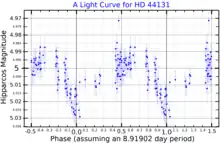 A light curve for HD 44131, plotted from Hipparcos data[10]