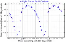 A near-infrared (J band) light curve for U Carinae, adpated from Laney and Stobie (1992)[8]