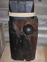 Mast with cannonball from 1855, on exhibit at the National Maritime Museum, Greenwich