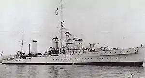 HMS Galatea was an Arethusa-class light cruiser of the Royal Navy. She was built by Scotts Shipbuilding & Engineering Co. (Greenock, Scotland), with the keel being laid down on 2 June 1933. She was launched on 9 August 1934, and commissioned 14 August 1935.