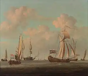 ![]() The English royal yacht Catherine under the Amsterdam flag, ca. 1677, by Willem van de Velde the Younger | |