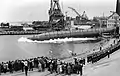 HSwMS Gripen was launched on 31 May 1960 by Karlskronavarvet, Karlskrona. The Minister of Defence Sven Andersson christened the submarine in the presence of, among others, Rear Admiral Sigurd Lagerman and Vice Admiral Gösta Ehrensvärd and County Governor Erik von Heland. Before the launch, the minister of defence inspected a guard of honour from the Karlskrona Naval Schools (Karlskrona örlogsskolor, KÖS). The Royal Swedish Navy Band played and the submarine glided in the water to the tune of the Swedish Navy's parade march. Minister Andersson delivered a long live for the king and the fatherland, and the Kungssången was sung.[2] Gripen was commissioned on 28 April 1962.