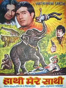 Haathi Mere Saathi (transl. Elephants Are My Companions) is a 1971 Indian Hindi-language drama film, directed by M. A. Thirumugam, with screenplay written by Salim–Javed (Salim Khan and Javed Akhtar) and dialogues by Inder Raj Anand. The movie has a Disneyesque appeal with an Indian twist. Haathi Mere Saathi was the biggest hit of 1971 going by box office collections, and was also critically acclaimed. The film stars Rajesh Khanna and Tanuja.[1] The film at that point in time was the biggest hit ever made by a South Indian producer in Hindi.[2]