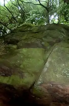 The Habichtwand is a rock formation located in the city of Bad Oeynhausen and the district of Minden-Lübbecke within the German state of North Rhine-Westphalia, not far from the city of Minden. The rock is located in the Wiehen Hills. The meaning of the German term "Habichtswand" is "Wall of the Northern Goshawk".