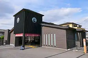 The station opened on 10 July 1925.[2] The name comes from the former Hachigata Castle, the ruins of which remain nearby.[1]