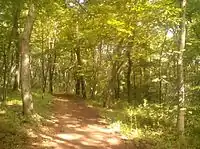 The park lies upon a low rising ridge rising about 15 to 20 meters above the surrounding plain. The highest elevation is about 100 meters above sea level. Measured from north to south, the park is from 100 to 300 meters, the park having an uneven size. From east to west the park is about 1.5 kilometers. The trail that runs the length of the ridge top is about 2.0 kilometers and branches into many secondary trails. The total size of the park of is about 39 hectares or about 96 acres.