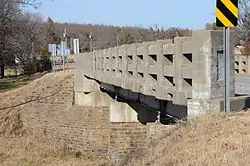 The Hackett Creek Bridge is a historic bridge near Hackett, Arkansas, which carries Arkansas Highway 45 across Hackett Creek. The bridge is a three-span concrete structure set on abutments and piers of stone and concrete. The longest single span is 36 feet (11 m) long, and the total bridge length is 98 feet (30 m). The deck is asphalt laid over concrete, and there are simple concrete railings on either side. Built in 1941, it is a well-preserved concrete bridge of the period.[2]