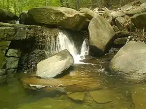 Hacklebarney State Park is a hiking destination year round. It has 978 acres (3.96 km2) and multiple hiking trails throughout the park. Through the middle of the park runs the Black River. The river is fed by two brooks, Trout and Rinehart. The Black River is flanked by massive boulders. These boulders create many waterfalls that can be seen from the trail. The park is known for its hiking and scenery, especially in the fall when the leaves begin to change colors.[2]