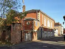 Hadleigh United Reformed Church, off Market Place, was originally the town's Congregational Church, founded in 1688. It was rebuilt in the early 19th century and restored in 1890.[28][29] The Baptist chapel was built in 1830.[28][30] St Joseph's Roman Catholic Church was built in 1966. In 1814, the Wesleyan Methodists purchased the 14th-century Thorpes hall house in George Street and leased it to the Primitive Methodists, known as Ranters, in 1836. In 1848, the Wesleyans built a chapel on land adjoining Thorpes and enlarged it in 1875.[13][31] The chapel is now a Grade II listed home. There was also an Episcopal Mission Chapel built on Hadleigh Heath in 1878 and restored in 1891; it was disused by 1912.[28]