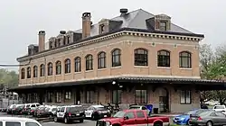 Hagerstown station is a historic railway station in Hagerstown, Washington County, Maryland. It was built in 1913 as a stop for the Western Maryland Railway. It is a 2+1⁄2-story hip roof brick building, reflecting the influence of the Commercial Style of the early 20th century. The building features overscaled classical detailing, a stone foundation, and a massive, modillioned cornice with stone disks defining each bay. The building is also encircled by a one-story porch that has a cantilevered roof on three sides.[2]
