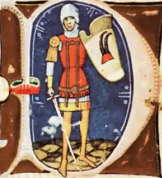 Hahold as depicted in the Illuminated Chronicle with false coat of arms
