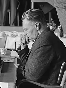 After the war, he took 3rd in the Hoogovens tournament at Beverwijk 1946 (Alberic O'Kelly de Galway won),[6] won at Leiden 1946 (C-tournament), tied for 6–8th at Zaandam 1946 (M. Euwe won),[7] tied for 2nd–3rd with George Alan Thomas, behind C. Vlagsma, at Baarn 1947,[8] shared 1st at Leeuwarden 1947, took 2nd, behind L. Prins, at Nijmegen 1948,[9] won at Vimperk 1949, tied for 3rd-4t at Beverwijk 1951 (Hermann Pilnik won).[10] He twice participated in zonal tournaments; took 11th at Bad Pyrmont 1951 (Svetozar Gligorić won) and took 8th at Munich 1954 (Wolfgang Unzicker won).