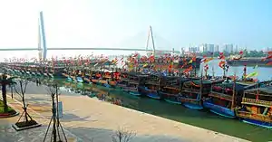 Haikou New Port (Chinese: 海口新港; pinyin: Hǎikǒu Xīn Gǎng) is a seaport in Hainan, China.[3] Formerly known as the Inner Harbour, this port is located on the southern side of the mouth of the Nandu River 7 km east of Haikou Xiuying Port. Prior to around 2016, it was main distribution centre for cargo entering Hainan, including seafood, with a wholesale fish market located at the far eastern end. The wholesale fish market is now located in the middle of Xinbu Island. Haikou New Port was also a major port for immigration onto Hainan Island.