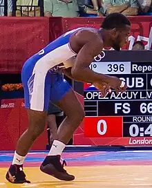 Haislan Veranes Garcia (born March 4, 1983) is a Canadian freestyle wrestler. Competing in the 65–66 kg division, he participated in the 2008, 2012 and 2016 Olympics; he reached quarter-finals in 2012, losing to the eventual champion Tatsuhiro Yonemitsu. Garcia competed at six world championships, beginning in 2009, and placed fifth in 2010. In 2015 he won a bronze medal at the 2015 Pan American Games in Toronto. At the Pan American Championships he won silver medals in 2008 and 2009 and bronze medals in 2010 and 2011.[1]
