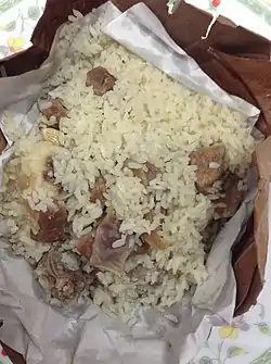 Haji biryani (also known as Hajir biryani) is one of the oldest restaurants in the heart of Old Dhaka, Bangladesh, selling chevon biryani (dish made with highly seasoned rice and goat's meat). The restaurant also sells borhani (a salted mint drink made of yogurt) and soft drinks. In 1939, the restaurant was started as a roadside food corner by a person named Haji Mohammad Hossain. Later on, the business took dramatic change and became part of the culture of Dhaka city.[1]