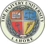 Hajvery University is chartered by Government of the Punjab.[3] The Higher Education Commission (Pakistan) recognizes the university as a "category W" institution.[4] It is named after Muslim Sufi Ali Hujwiri aka Data ganj Bakhsh. It has a main campus in the Industrial Area of Gulberg III, Lahore; a second campus (called the Euro Campus) near Gulburg-III, Lahore; a third campus in Sheikhupura (SKP Campus); a fourth campus under construction in Multan and a fifth campus planned for Dubai, UAE.[5] The university has six constituent schools, each focused on a specific field of study: business; commerce and banking; engineering and computer science; fashion design; humanities and social sciences and pharmacy.[6] The library at the main campus provides support for the courses offered with books, videos, journals and other reference sources.[5]
