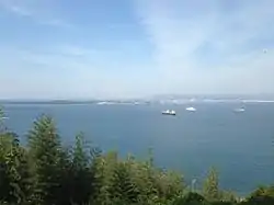 A number of small islands are contained either within the bay or around it.