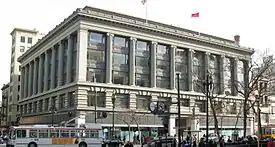 • On October 31, 1912, opened a grand new store at 901 Market Street, southwest corner of Fifth Street. The store was designed by Reid & Reid,[10] with five stories plus a basement roughly 175x170 feet square, for a total of approximately 178,000 sq ft.[8] Hale's added infantwear, book and flower departments. After Hale's moved east to 867 and 753 Market in the mid-1940s, J.C. Penney operated here from 1944[11] until February 1971[12][13] and was renovated after that in 1985.[14] Until 2023 home to a Saks Off Fifth and a Nordstrom Rack, which both closed.[15]