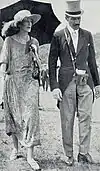 Geoffrey Skeffington Smyth (1873-1939) was a distinguished army officer in his youth and won several military awards including the DSO.[19] In 1904 he married Violet Monckton-Arundell who was the daughter of George Monckton-Arundell, 7th Viscount Galway. She had a large fortune inherited from her father. In 1906 Geoffrey retired from the Army and he and Violet appear to have lived as socialites. They frequently appear in the social pages of the newspapers of that day. A photo of them is shown. Their son Terence Skeffington-Smyth who grew up at Hale Park lived a similar lifestyle and inherited a fortune from his mother when she died in 1930.