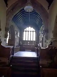 Building and possibly rebuilding continued for some years, as early in 1223 Brian de Lisle was instructed to have made for the bishop sixty copula de cablecio from the royal Forest of Kinver for the "refurbishment of his church of Hales."[9] Evidently the matter was considered important, as a second set of more detailed instructions were issued to Brian on 23 May, raising the possibility of buying the items ready-made.[10] Although the Victoria County History account mentions the grant,[11] it does not explain what the items actually were. Copula de cablecio suggests some sort of couplings or ties, possibly rafters, joists or other structural members. In connection with the grant of wood, instructions were also issued to Brian on 5 June to procure for the abbey, with minimal damage to the woodland, sufficient wood for four fires to melt lead,[12] indicating that roof work was under way: rather than a repair, this was perhaps lead covering to replace an earlier, temporary roof.
