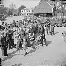 The Hallamshire Battalion saw action in World War II, and would serve with the 49th (West Riding) Infantry Division throughout the war, as it had in World War I.[9] The battalion and most of the division first saw action as part of the ill-fated Norwegian Campaign in April 1940. The battalion arrived with most of the 146th Infantry Brigade, although they were poorly-trained and equipped for the task being assigned to them. They were ashore for twelve days, seeing limited action and losing their only casualties on the journey home when one of their transports was sunk.[10]