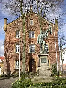 The area of the town and the former district of Halle formerly belonged to the Holy Roman Empire's County of Ravensberg. The latter was surrounded by the principalities of Osnabrück, Münster, Paderborn and Minden and was neighbouring the Principality of Lippe. In contrast to these principalities Ravensberg always has been secular estate, which at first belonged to the Counts of Ravensberg and later to their Jülich heirs. After this nobility also became extinct the county, along with others, came into possession of the house of Kleve-Mark and about a century later, via the Margraviate of Brandenburg, part of the kingdom of Prussia.