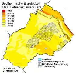 Halle is fairly to well, in areas on or near the ridge very well suited to use geothermal power sources by means of geothermal probes and heat production using a heat pump (see also adjoining map).