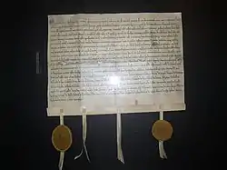 In the year 1246 bishop Engelbert of Osnabrück swapped the church "tor Halle", situated on the southern edge of his diocese, with all rights and duties with the castle and Benedictine Abbey Iburg in exchange for the church in Rheda with all rights and earnings. In the document, dating May 9, 1246, which seals the exchange – in a manner of speaking the certificate of birth – Halle is mentioned for the first time. The two villages Oldendorf and Gartnisch, today subdivisions of Halle embracing it in the east and west, are older than the present core of settlement. They are already mentioned as early as in the 11th century.