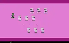 The game was released in July 2010 at the Classic Gaming Expo.[15][16][17] At the exposition, a limited number of physical copies of the game were on sale. It was one of four new Atari 2600 titles released by AtariAge at the 2010 Classic Gaming Expo in Las Vegas, along with Duck Attack!, K.O. Cruiser (a boxing game) and a port of Sega's 1981 arcade game Turbo.[18][19] The game was also made available for play on modern computers via an emulator.[2]