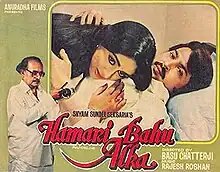 Hamari Bahu Alka (transl. Our Daughter-in-Law Alka) is a 1982 Hindi movie, directed by Basu Chatterjee, based on the Bengali story Eto Tuku Basha by Manoj Basu.[1] It stars Rakesh Roshan, Bindiya Goswami and Utpal Dutt. Music was by Rajesh Roshan, and it had the first solo song for Alka Yagnik.[2]