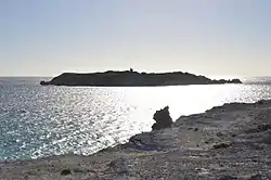Afternoon profile of island showing the former lighthouse base