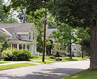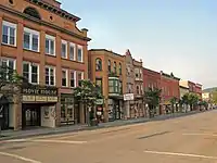 Much of the historic core of the village is part of the Hamilton Village Historic District, which became listed on the National Register of Historic Places in 1984.[32] Many of the buildings in today's village date from 1895, the year of "the great fire" which destroyed much of the village.[25][33] Many of those buildings were rebuilt in the same year, with "1895" on their facades.[34]