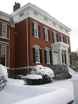 The Hamilton White House is a historic home in Syracuse, New York. The house, Greek Revival in design, was built by and for Hamilton White, circa 1840/42, and occupied by his family in 1842/43. Many believe based on similarities in structure and style that the unknown architect and builder was the same person who designed and built the Moses Burnett House, completed in early 1842, later to become the Syracuse Century Club building. The house was added to the National Register of Historic Places in 1973 due to its significance in the area of architecture and its relationship, through Hamilton White, to the commerce and politics of Syracuse.[2]