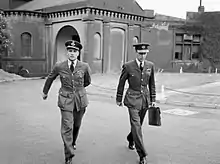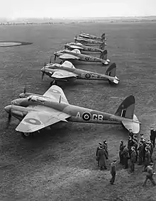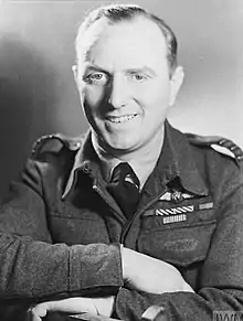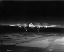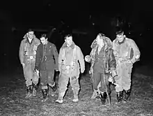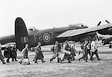 Mahaddie's final assignment during the war came 24 July 1944 when he was made Officer Commanding at RAF Warboys, the airfield that was home for the Pathfinder Force Training Unit.[5][16] He took over the command from Group Captain J. H. Searby, a pilot whom Mahaddie had earlier recruited to the Pathfinder Force, famous for being the Master Bomber on the Peenemünde raid.[17] The unit trained aircrew on the Avro Lancaster and the de Havilland Mosquito. Mahaddie was again Mentioned in Despatches on 1 January 1945.[2] The last wartime sortie he flew was in leading a flight of 60 Lancasters to repatriate RAF PoWs held at Lübeck.[3]