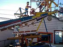 Hamtramck Disneyland is a yard of folk art located in Hamtramck, Michigan begun by a man named Dmytro Szylak.[1] Work on the installation started in 1992 and came to be finished in 1999. It is built on a 30-foot backyard on top of two adjacent garages. Dmytro was born in Ukraine, and also once lived in Germany. After immigrating to the United States, he worked for General Motors, but soon after his retirement he felt the need to find a hobby. Dmytro began piling together different objects—some old, some new, and some bought, while others were hand crafted. This towering structure stands tall above his house and garage. Over the course of 12 years, Dmytro continued to add different pieces to his work, which eventually grew to be a collage.[2]